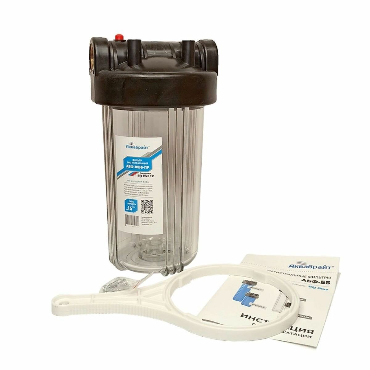 Фильтр магистральный "Аквабрайт АБФ-10ББ-ПР" прозрачный/черный