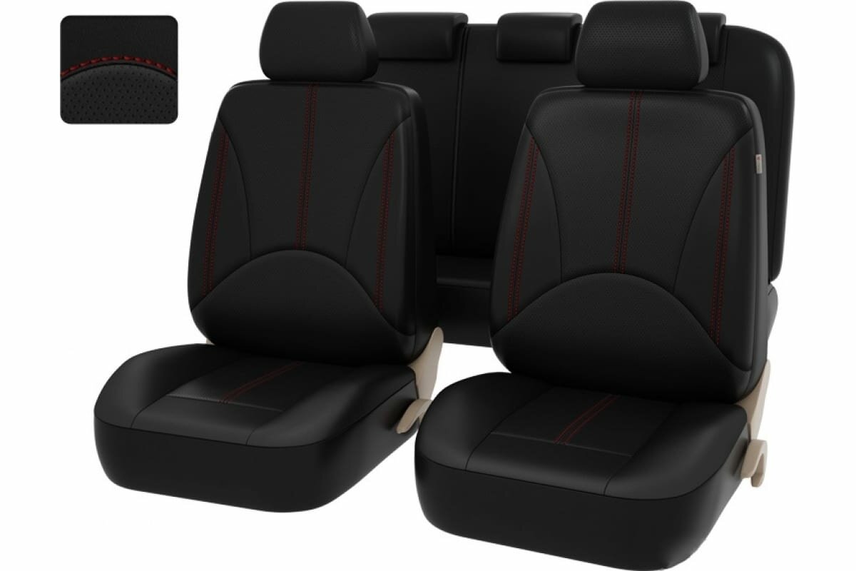 Купить Чехлы на сидения автомобиля PSV, комплект в машину Imperial Next, Черная экокожа с красной строчкой