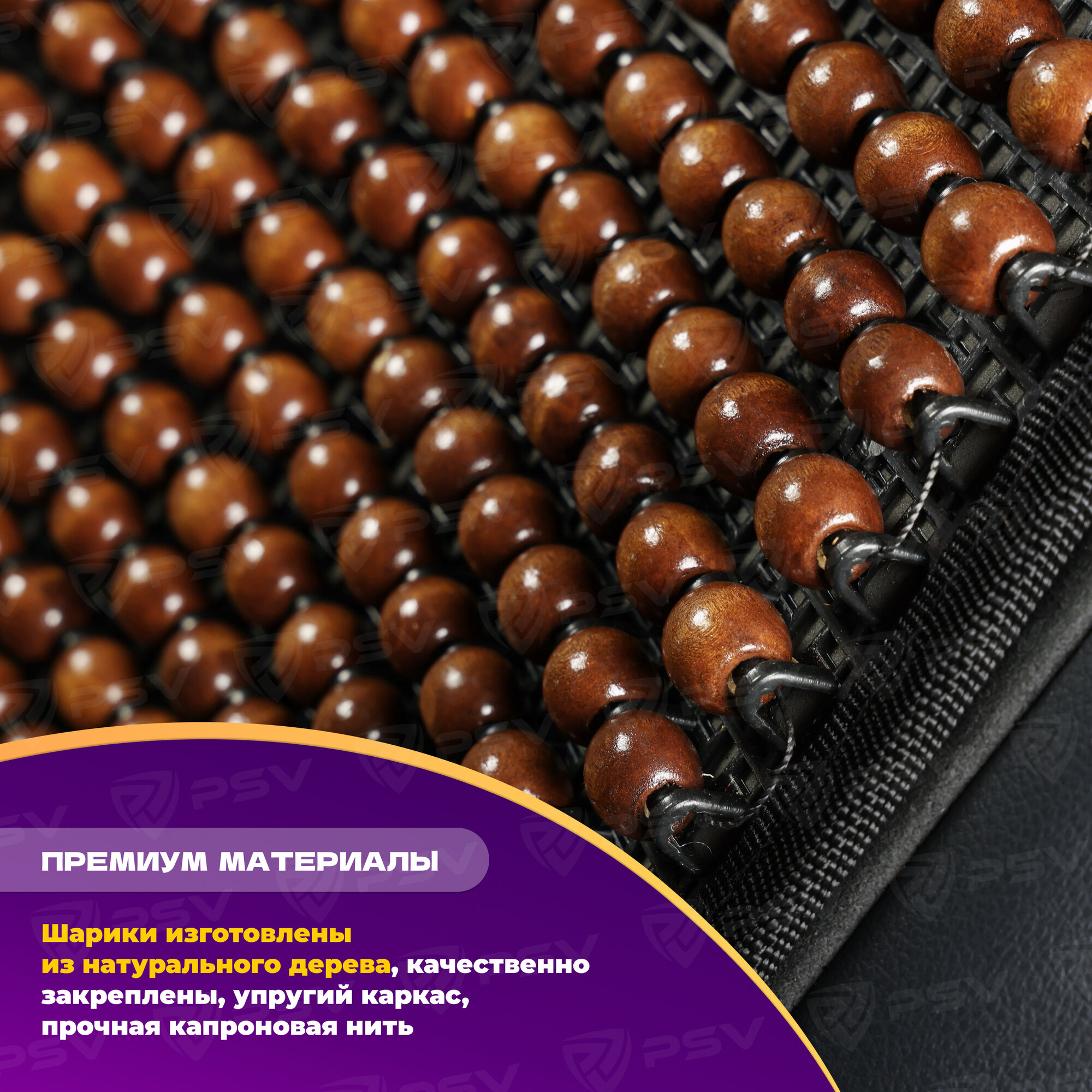 PSV 137158 Накидка на сиденье массажная деревянные шарики PSV 2010 большая с поддержкой черная