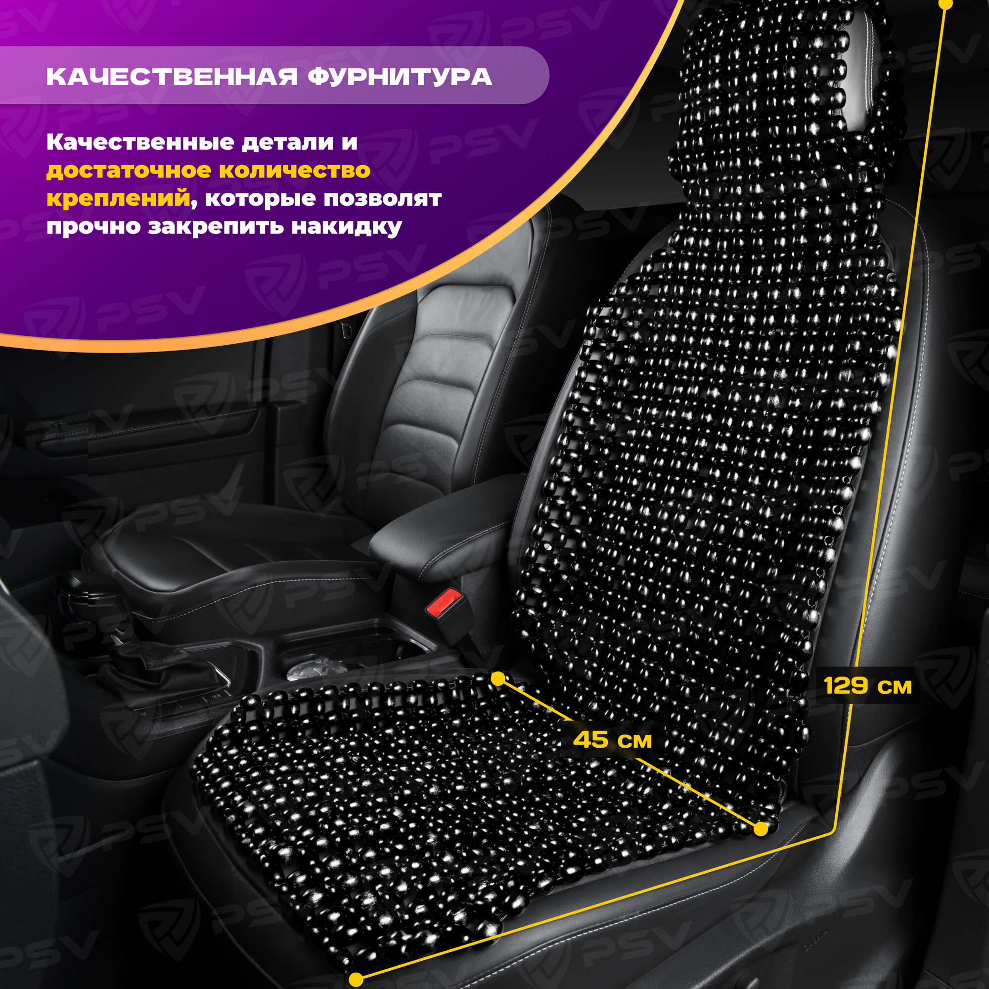 СохранитьНакидка на сиденье массажная деревянные шарики PSV 2003 большая черная PSV 137166 | цена за 1 шт интересное: