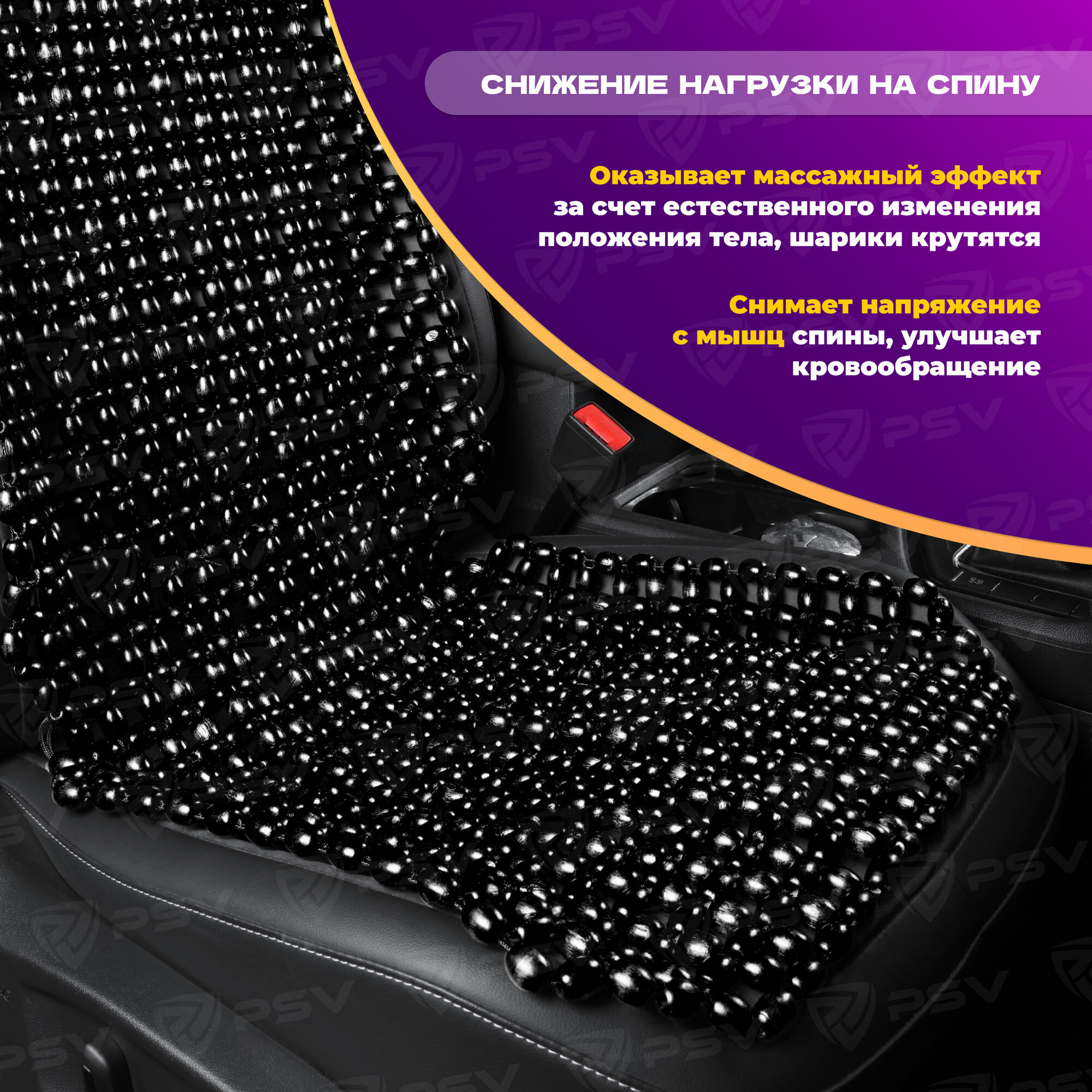 Купить Накидка на сиденье массажная деревянные шарики PSV 2003 большая черная PSV 137166 | цена за 1 шт