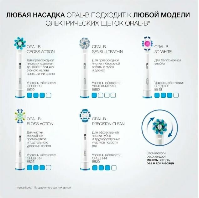 | Отзыв: | Купила дочери (5л) щётку, чистит с удовольствием, зубы стали заметно чище и белее (чем когда она чистила обычной щеткой). Покупкой довольны, планирую купить и себе насадки |