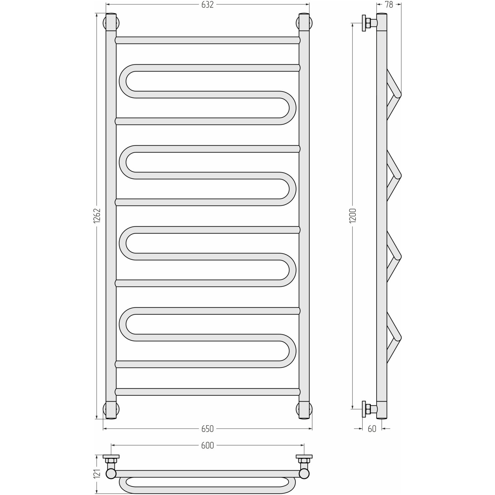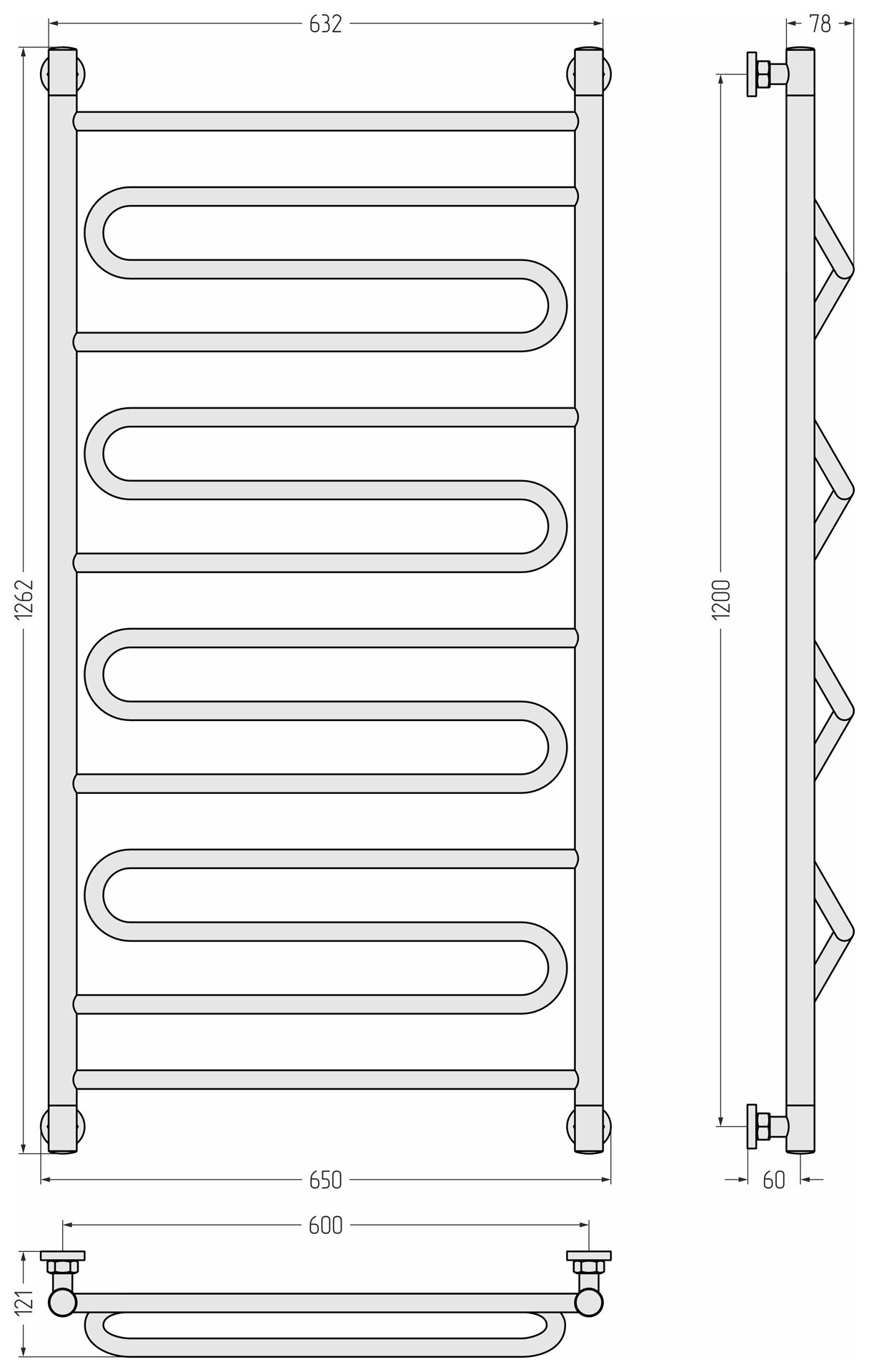 Полотенцесушитель водяной Сунержа Элегия+ 1200х600 Без покрытия