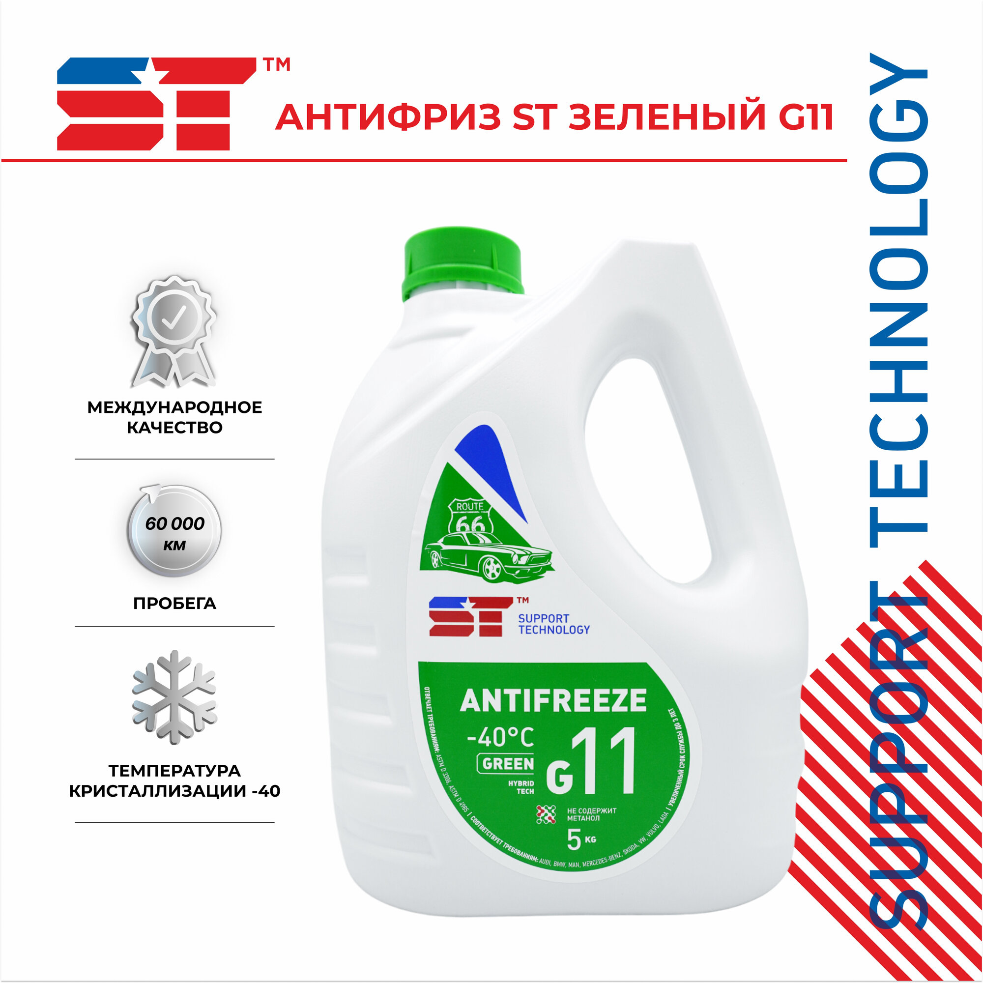 SUPPORT TECHNOLOGY ST0121 Антифриз ST зеленый G11 5 кг