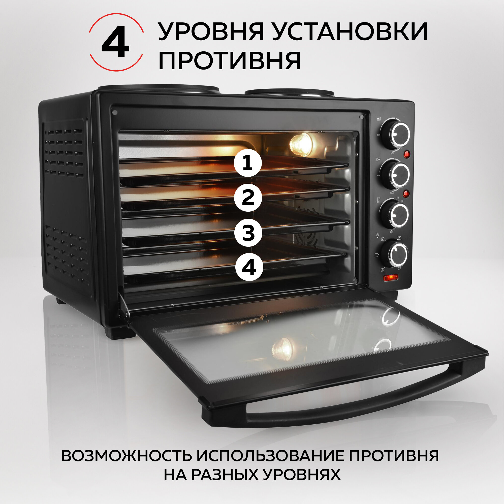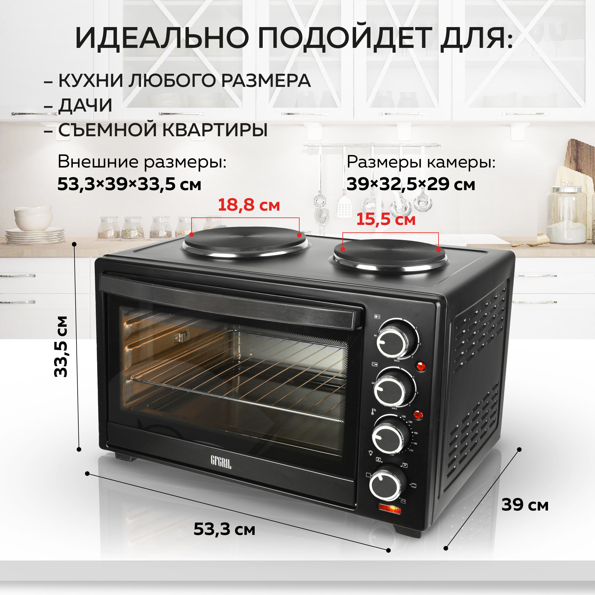 GFGRIL Многофункциональная электрическая мини-печь GFO-40 HOT PLATES, духовка с 2 конфорками