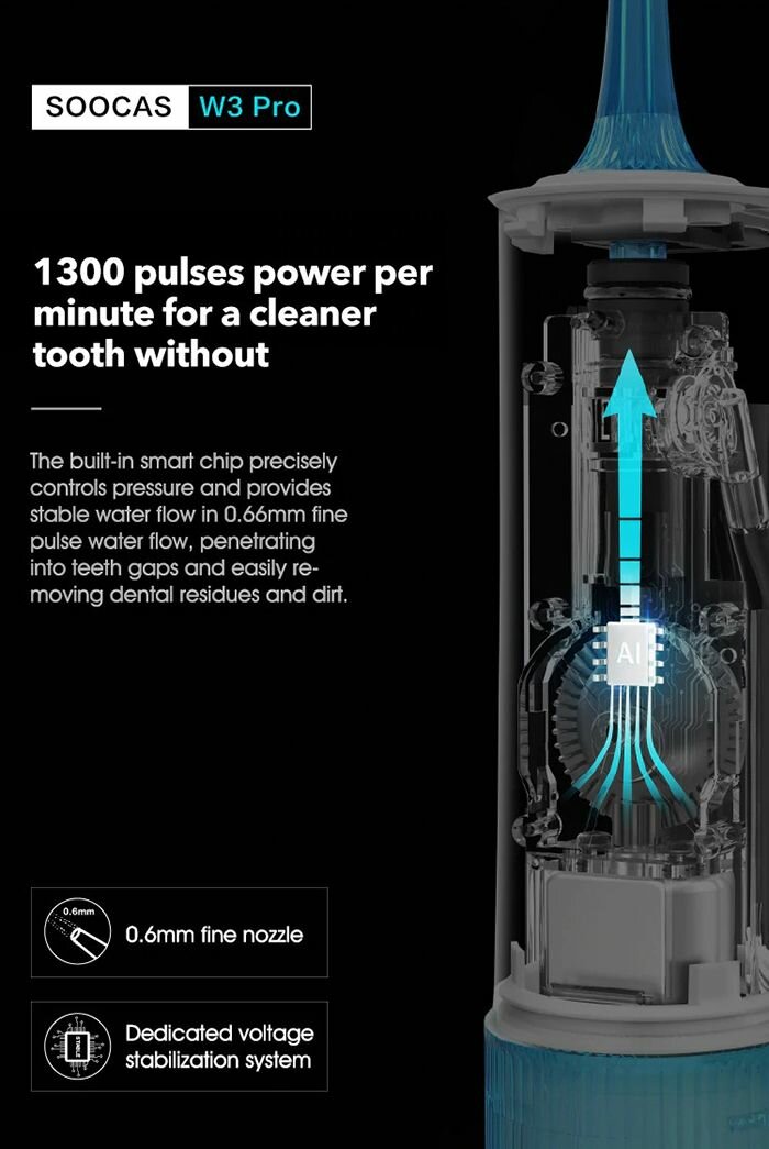 Ирригатор для полости рта Soocas W3 PRO, Портативный (4 насадки, кейс для насадок в комплекте), 7 режимов
