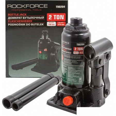 Домкрат гидравлический RF-T90204EURO бутылочный с клапаном 2т (выс.подъема 150-278мм) ROCKFORCE 16, ROCK FORCE RFT90204EURO (1 шт.)