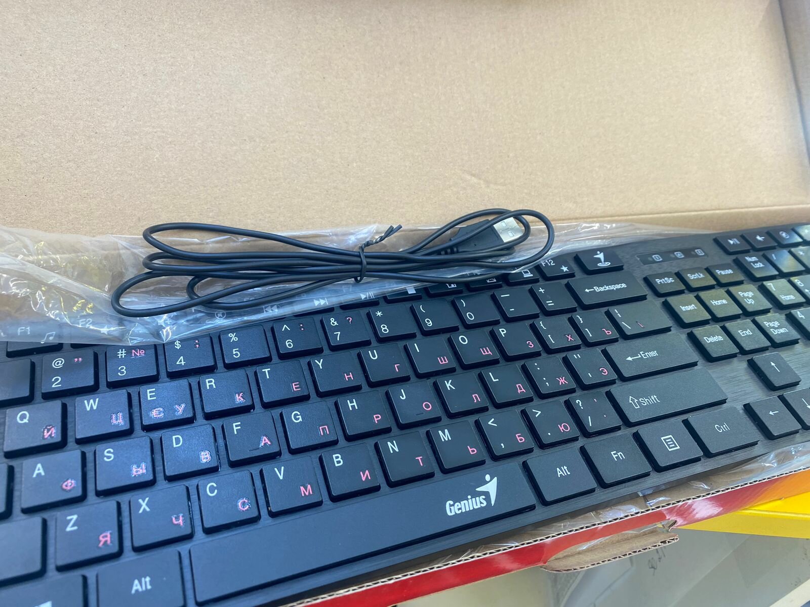 Поэтому искал дешевую, компактную и чтобы русские буквы были другого цвета. Правда цвет русских букв темноватый, какой-то бордовый. Ну короче для своей цены приемлемо. |