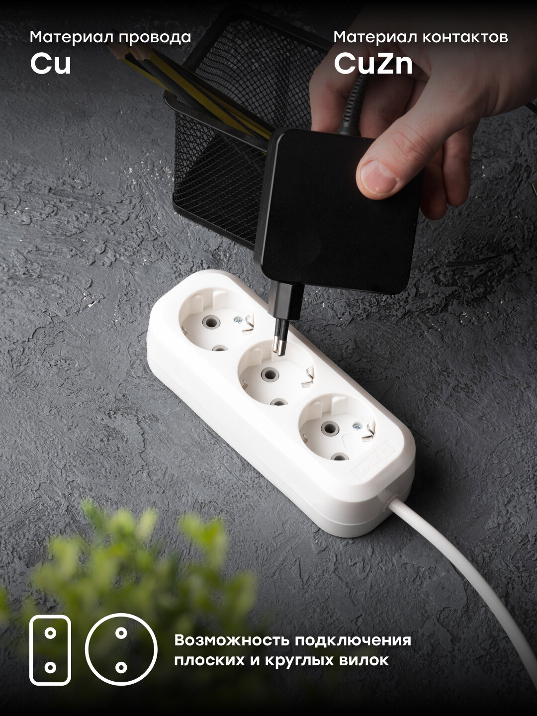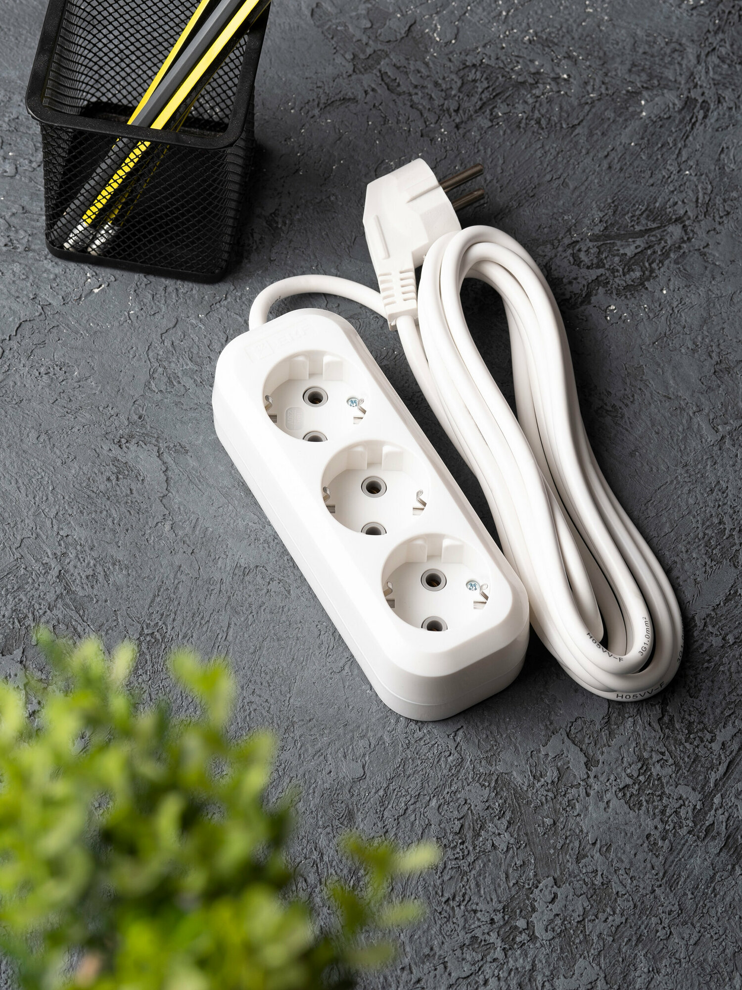 Удлинитель бытовой с заземлением, 3 розетки, 5 метров, Эксперт (16А-3,5кВт, ПВС)