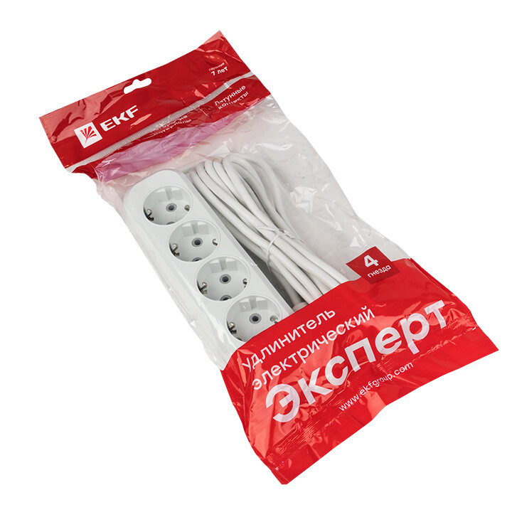 Купить Удлинитель 4х5м с заземл. 16А IP20 "Эксперт" 3.5кВт з/к ПВС 3х1 UBA16-310-4-05, EKF UBA16310405 (1 шт.)