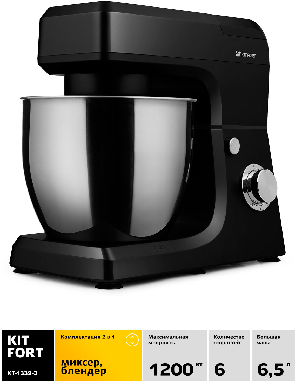 Миксер планетарный KITFORT КТ-1339-3, черный