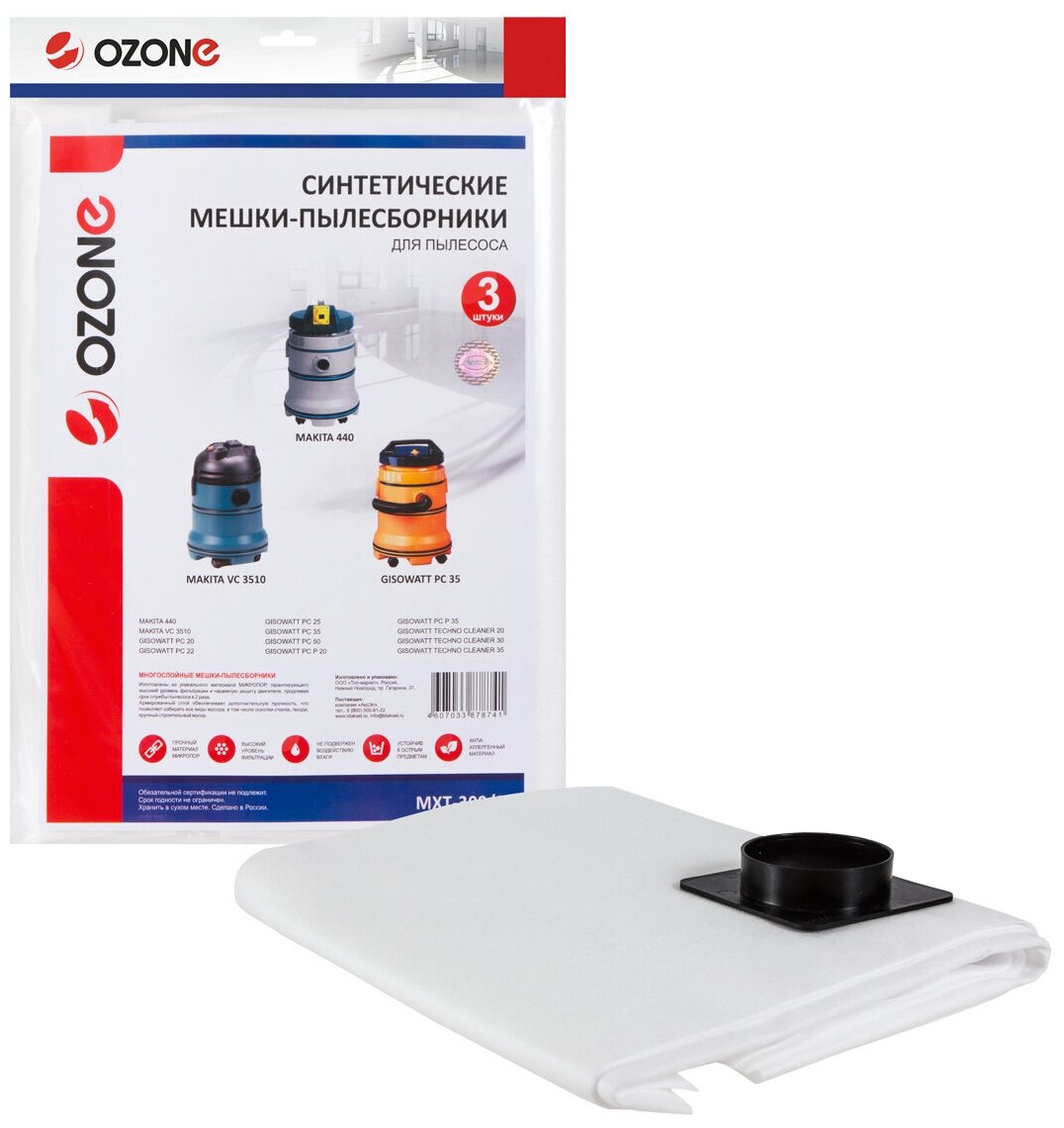 MXT-309/3 Мешки-пылесборники Ozone синтетические для пылесоса, 3 шт