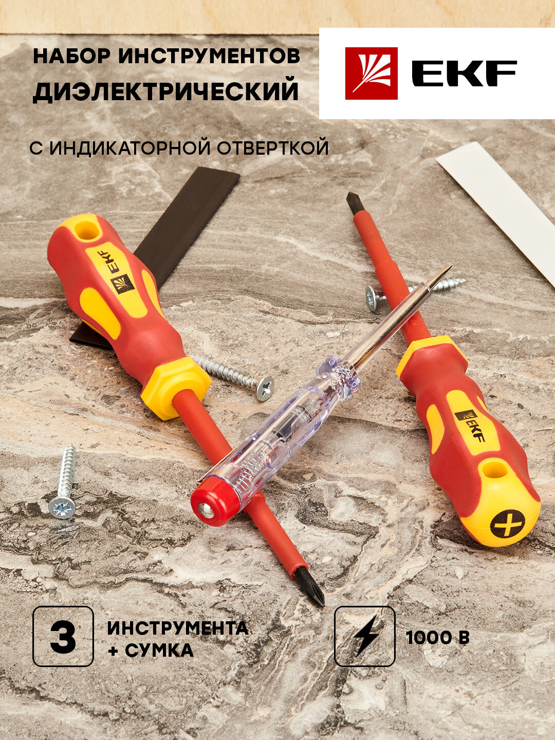 Набор диэлектрического инструмента EKF НИО-03, 3 предм., желтый/красный