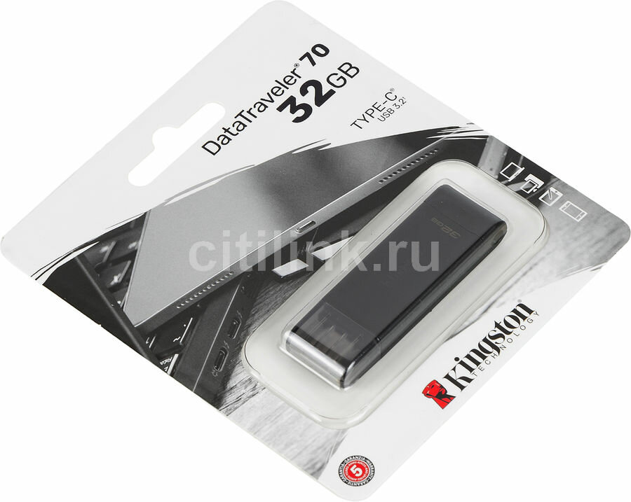 Флешка Kingston DT-70 32Гб, USB-C 3.2, чёрный (DT70/32GB)