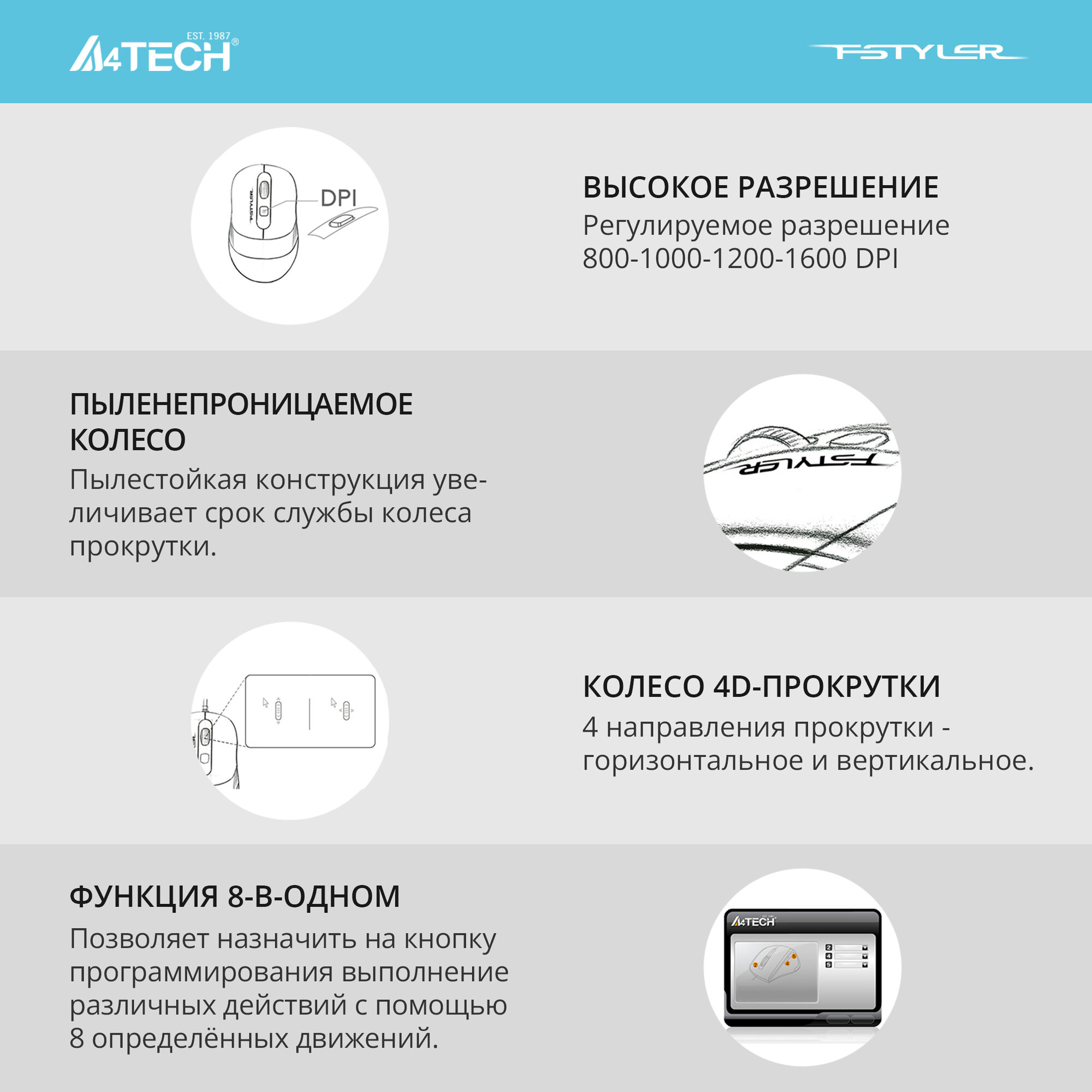 Комплект A4Tech FG3200 Air slim, USB, синий тип подключения: беспроводная, интерфейс: USB