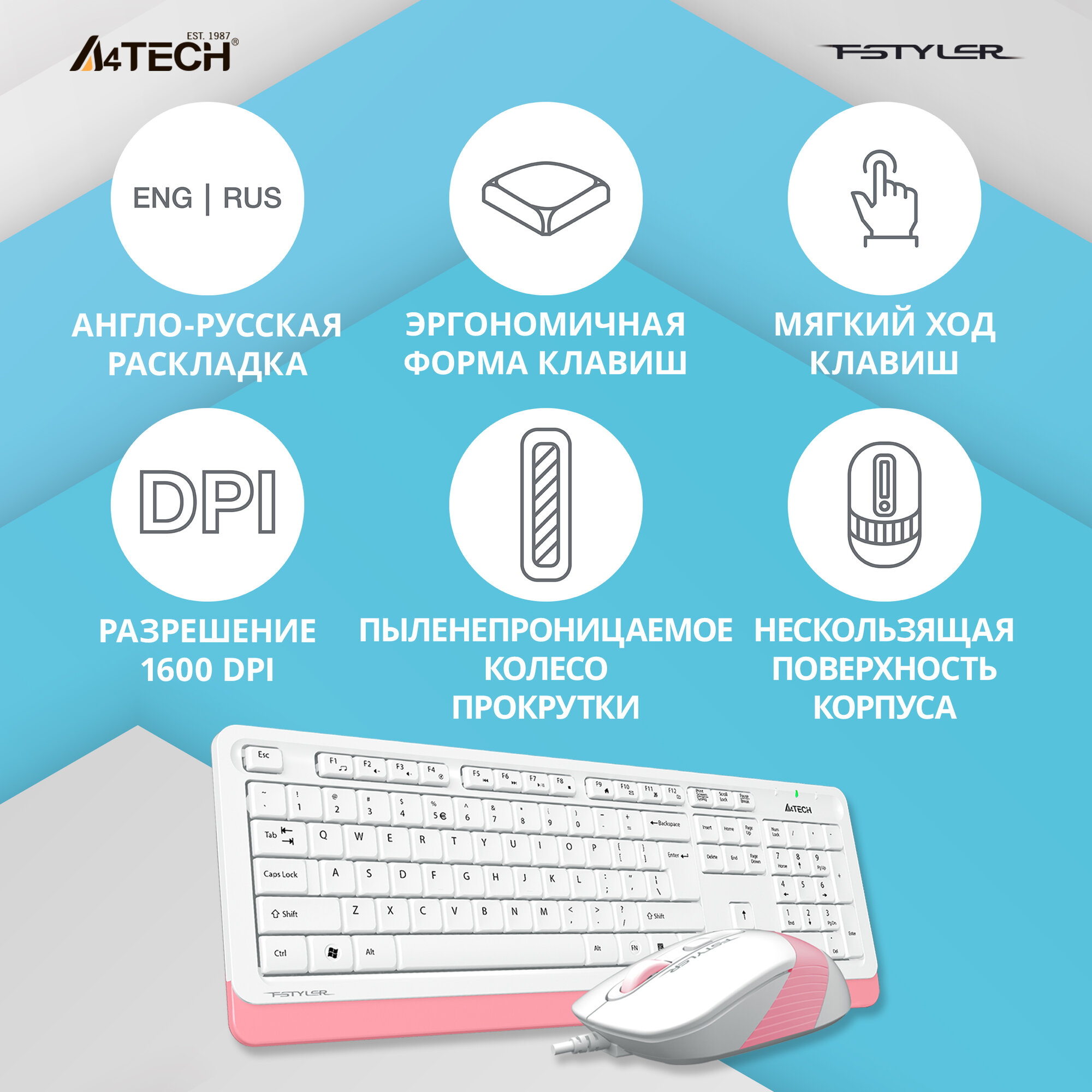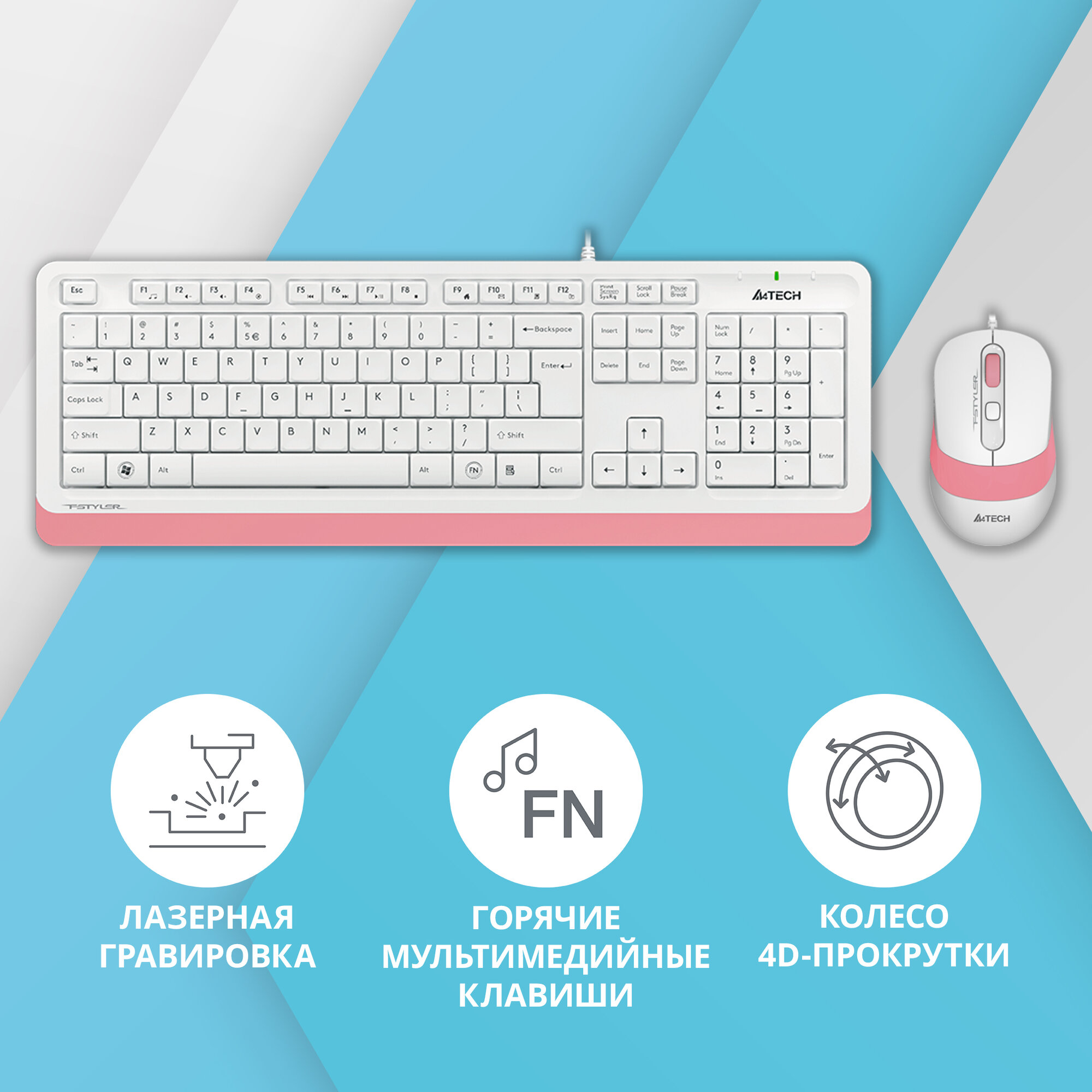 Купить Комплект клавиатура + мышь A4Tech Fstyler F1010 White/Pink (Кл-ра, USB,+Мышь,4кн, Roll, USB