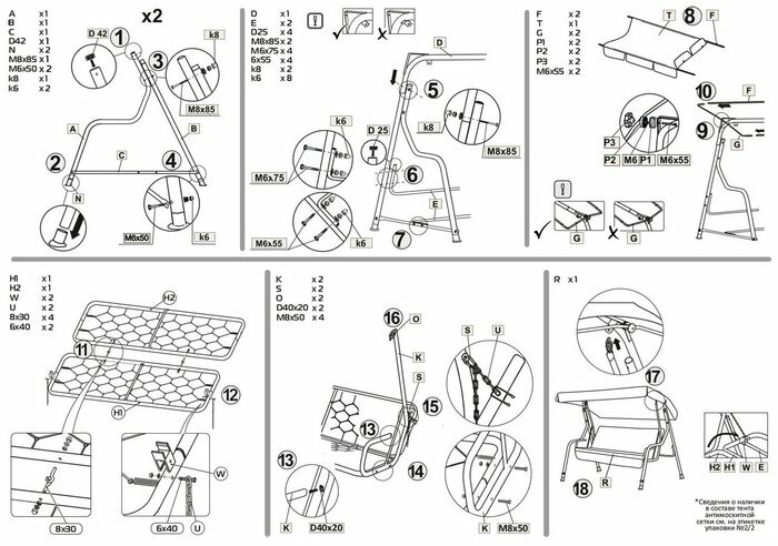 | Диаметр трубы каркаса | 42 мм |