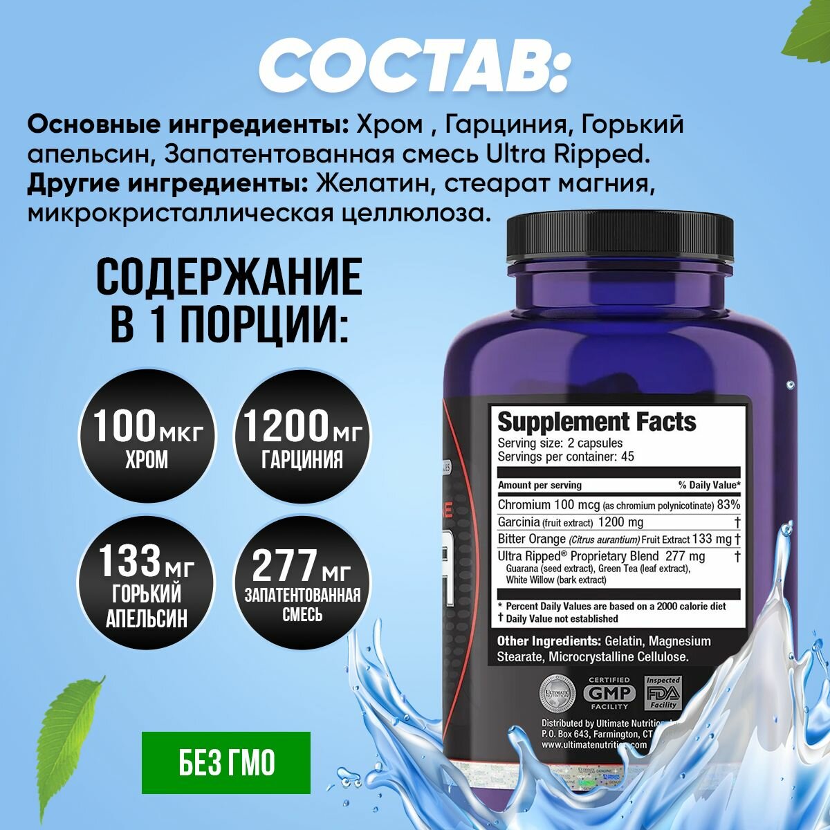 Жиросжигатель Ultra Ripped Ultimate Nutrition 90 капс. (Без вкуса) интересное:
