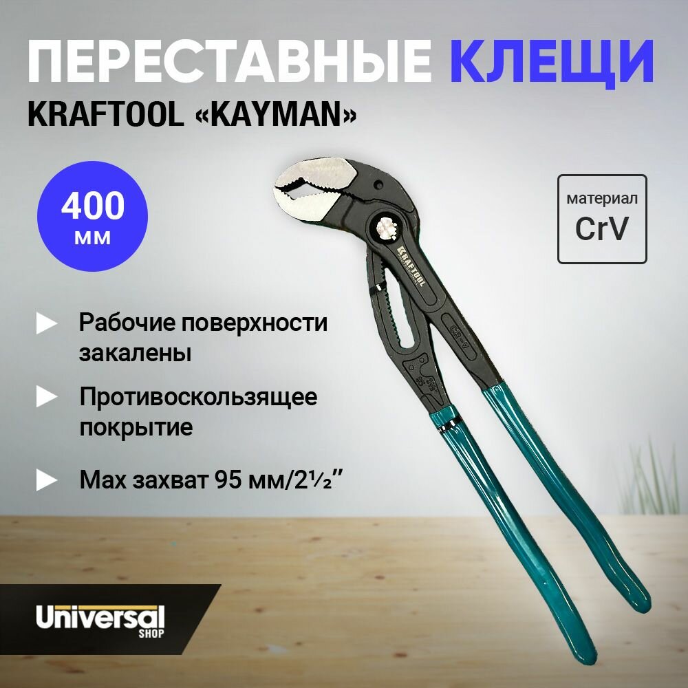 KRAFTOOL Клещи переставные "KAYMAN", Cr-V, max захват до 95 мм, 400мм, KRAFTOOL 22353-40