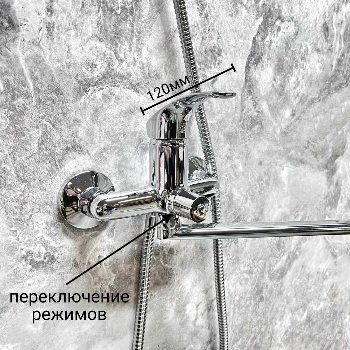 Смеситель для ванны Haiba HB2236 с длинным изливом и переключателем в корпусе, хром