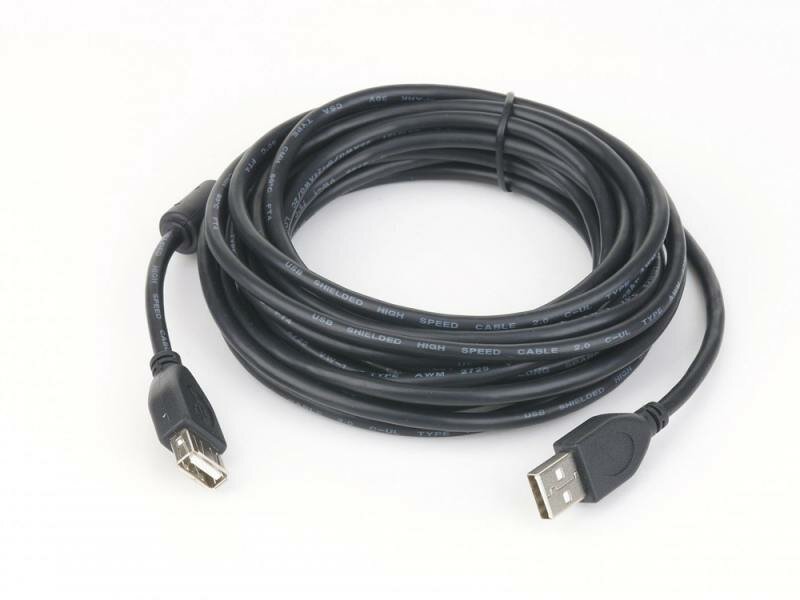 Кабель удлинитель USB2.0 Pro Cablexpert CCF2-USB2-AMAF-15, AM/AF, 4.5 м, экран, 2 ферритовых кольца, черный