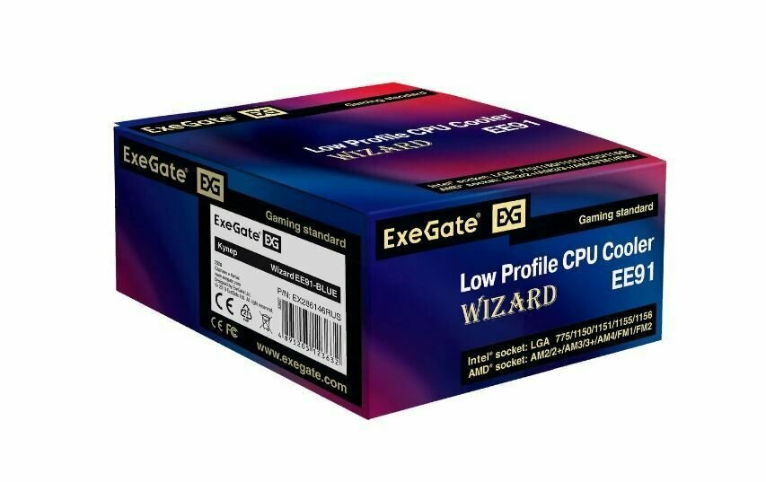 EX286146RUS, Кулер ExeGate Wizard EE91-BLUE (Al, LGA775/1150/1151/1155/ 1156/1200/1700/AM2/ AM2+/AM3/AM3+/AM4/AM5/ FM1/FM2/754/939/940, TDP