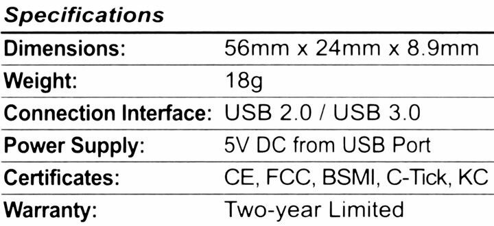 | Отзыв: | работает без проблем. Когда вытаскиваешь прогибается и похрустывает. Версия для USB-2 уже не помню которого года до сих пор жива и в работе, так у неё корпусом можно было гвозди забивать.. Ну и в ноуте приходится крайние порты выбирать - широковат |