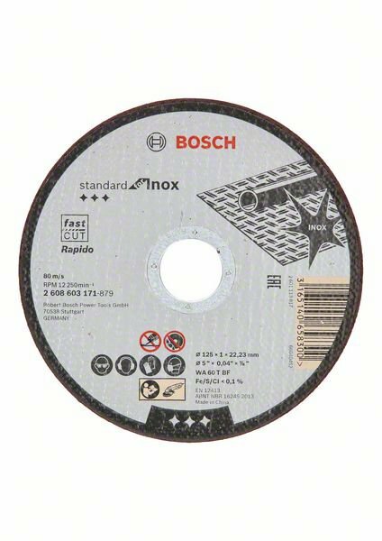Диск отрезной BOSCH Standard for Inox - Rapido 2608603171, 125 мм, 1 шт.