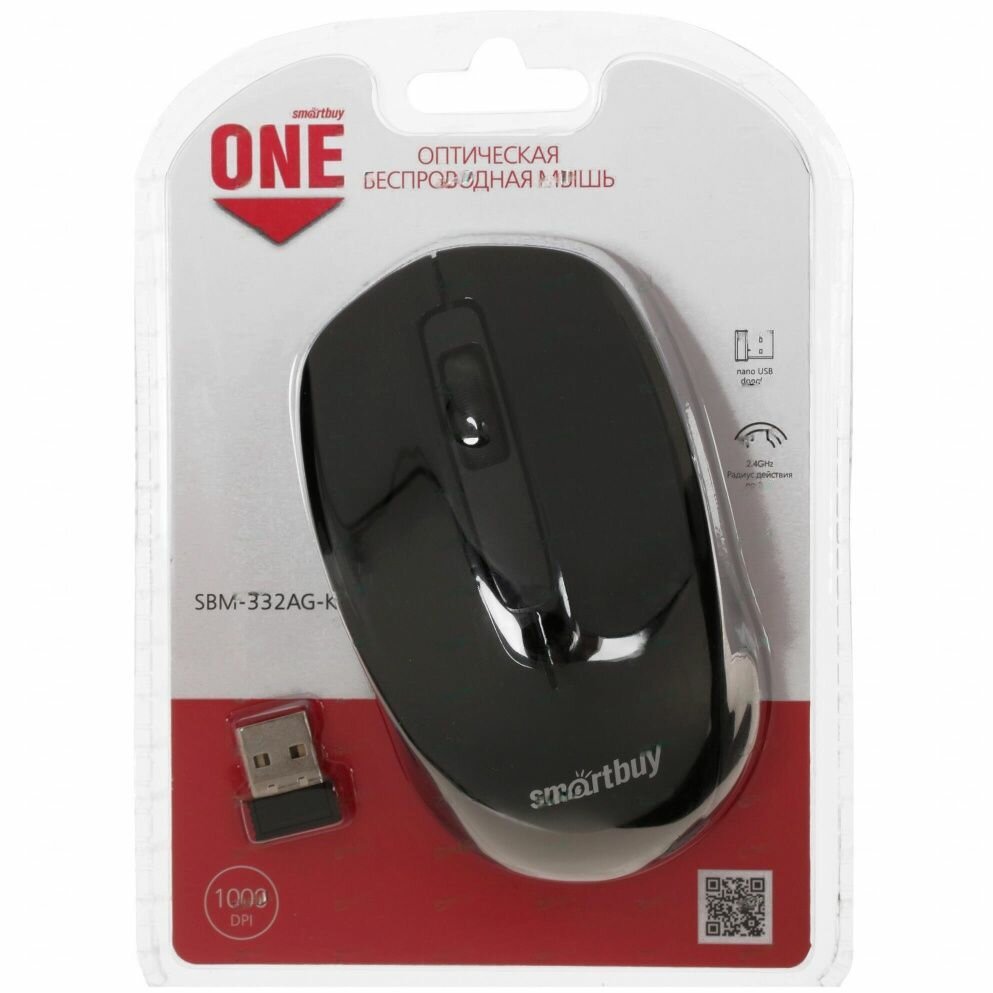 Купить Мышь компьютерная Smartbuy ONE 332, беспроводная, черная (SBM-332AG-K)/60