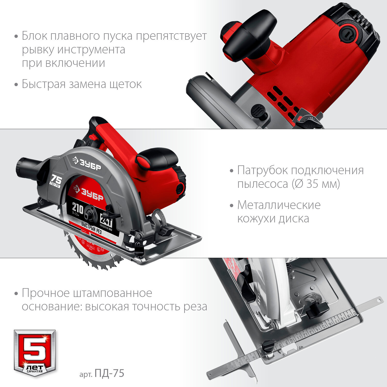 Пила дисковая ЗУБР ПД-75, серия «мастер»