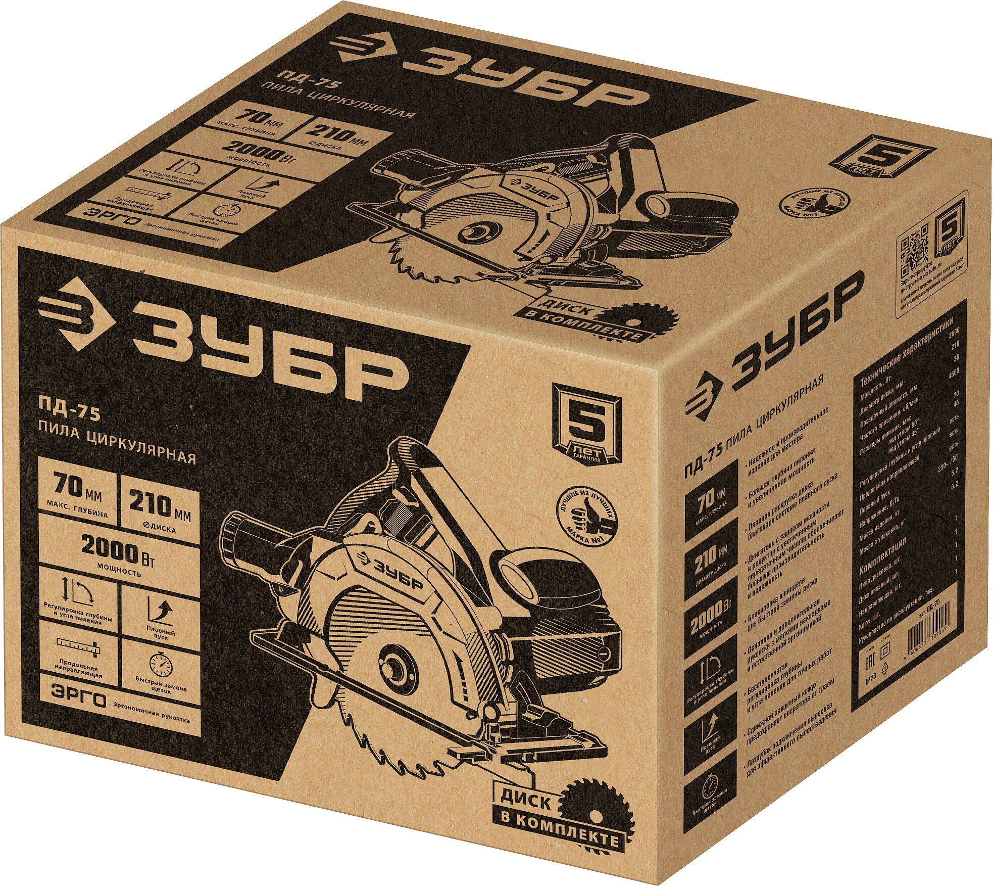 ЗУБР 2000 Вт, диск 210 мм, пила дисковая ПД-75 Мастер