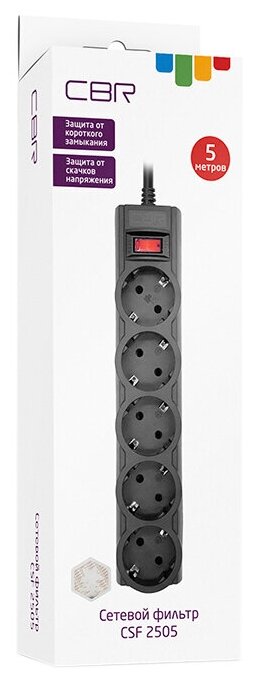 СохранитьCbr сбр сетевые фильтры Сетевой фильтр CSF 2505-5.0 Black CB, 5 евророзеток, длина кабеля 5 метров, цвет чёрный коробка интересное: