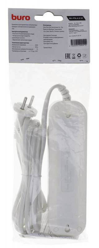 Сетевой удлинитель Buro BU-PSL4.3/W 3м (4 розетки) белый (пакет ПЭ)