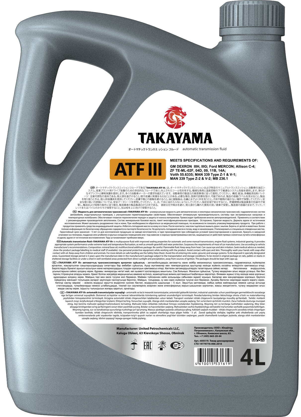 TAKAYAMA ATF lll 4л пластик