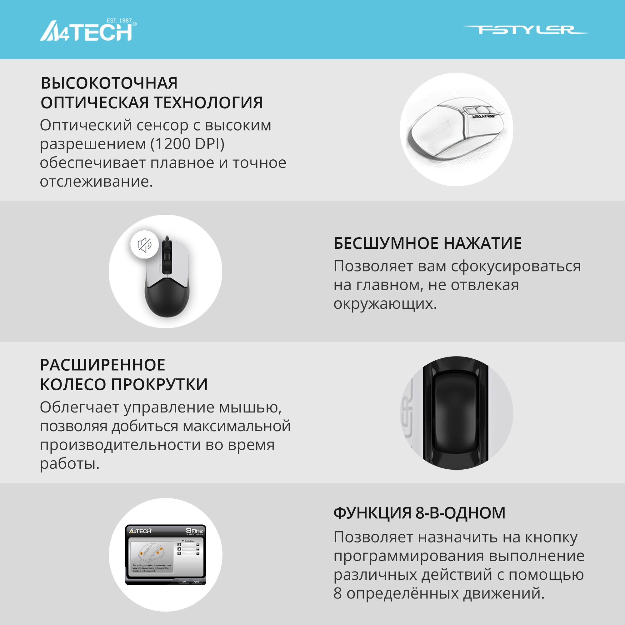 Мышь A4Tech Fstyler Fm12s белый/черный .