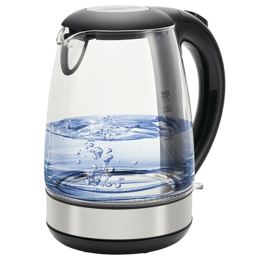 Чайник электрический Поларис PWK 1710CGL с дисковым нагревательным элементом термостойкое стекло черный фильтр 2.2кВт 1.7л / техника для кухни /