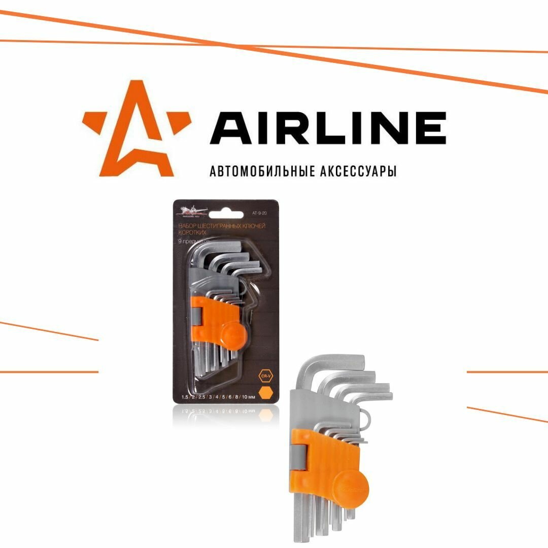 AIRLINE / at920 / Набор шестигранных ключей коротких 9 предметов (1.5,2,2.5,3,4,5,6,8,10мм) пласт.подвес