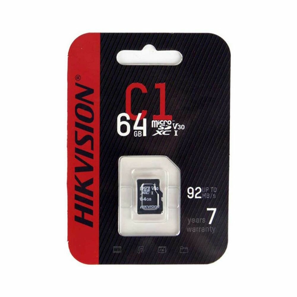 Купить Карта памяти microSDXC 64GB Hikvision C1 Memory Card (HS-TF-C1(STD)/64G/ZAZ01X00/OD) UHS-I U1 Class 10/V30, 92/30 MB/s, 0 C to 70 C, TLC, RTL (012764)