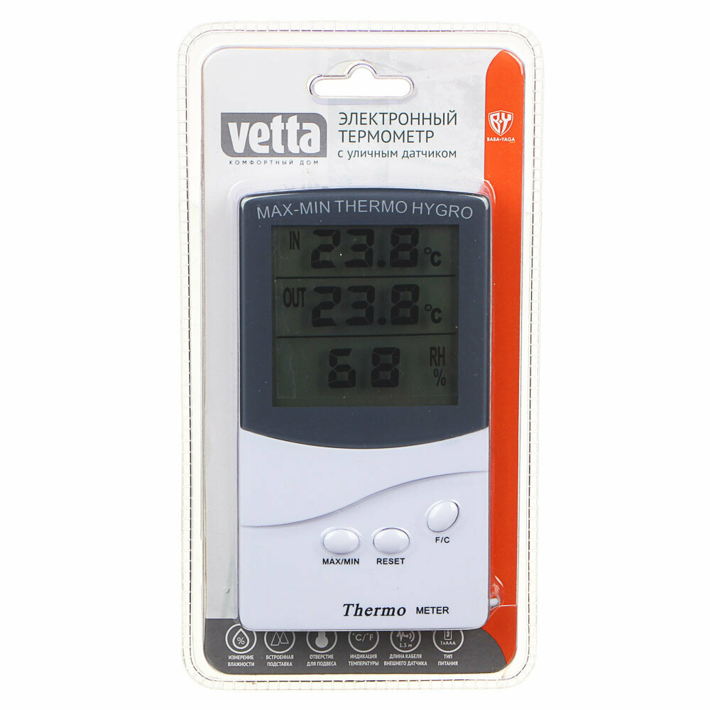 Купить Vetta Термометр электронный, выносной датчик температуры, влажность,12.5x7см, пластик,1xAAA (473-049)