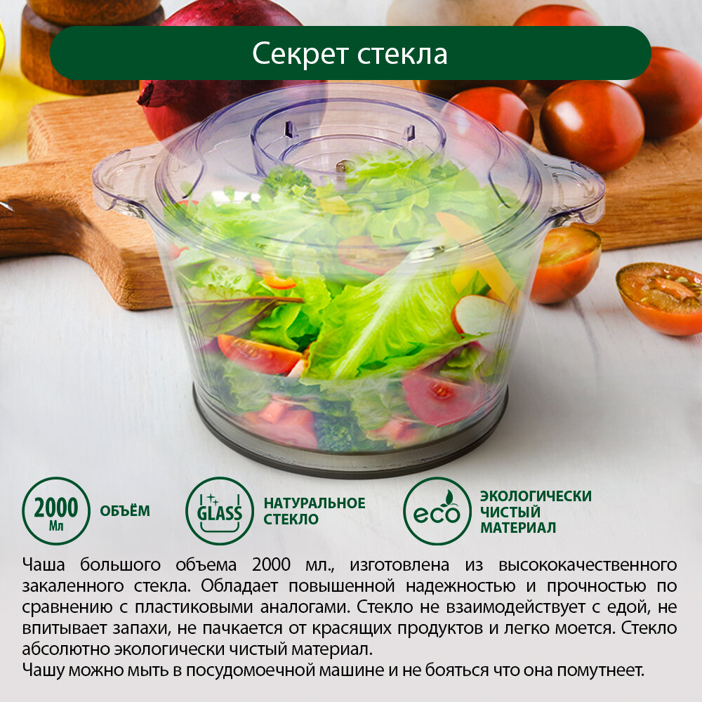 | Плюсы: | Большой объем, форма с ручками, двухуровневые ножи, удобство пользования |