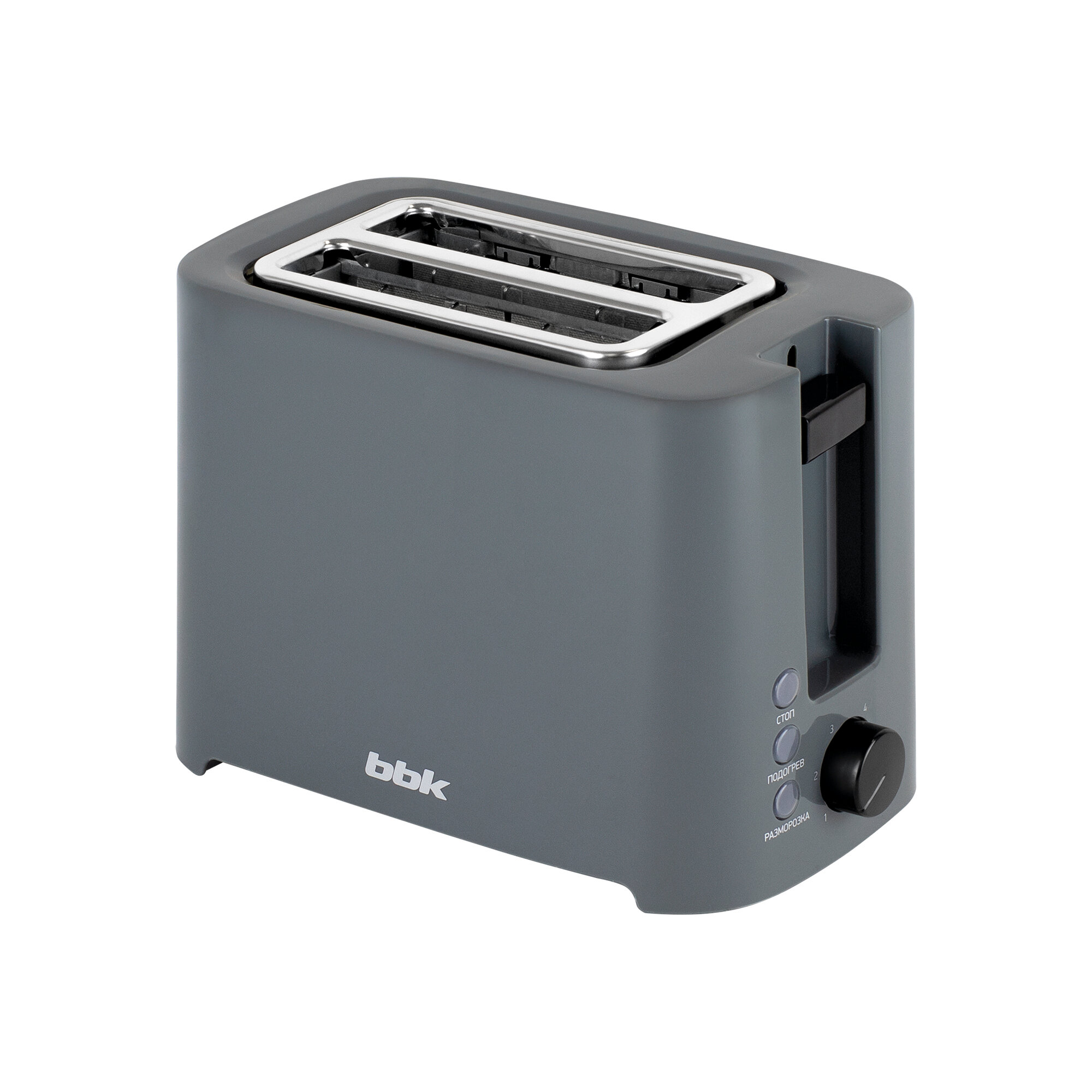 Тостер BBK TR81M темно-серый, 800 Вт, 2 тоста, функция подогрева и разморозки, защита от перегрева