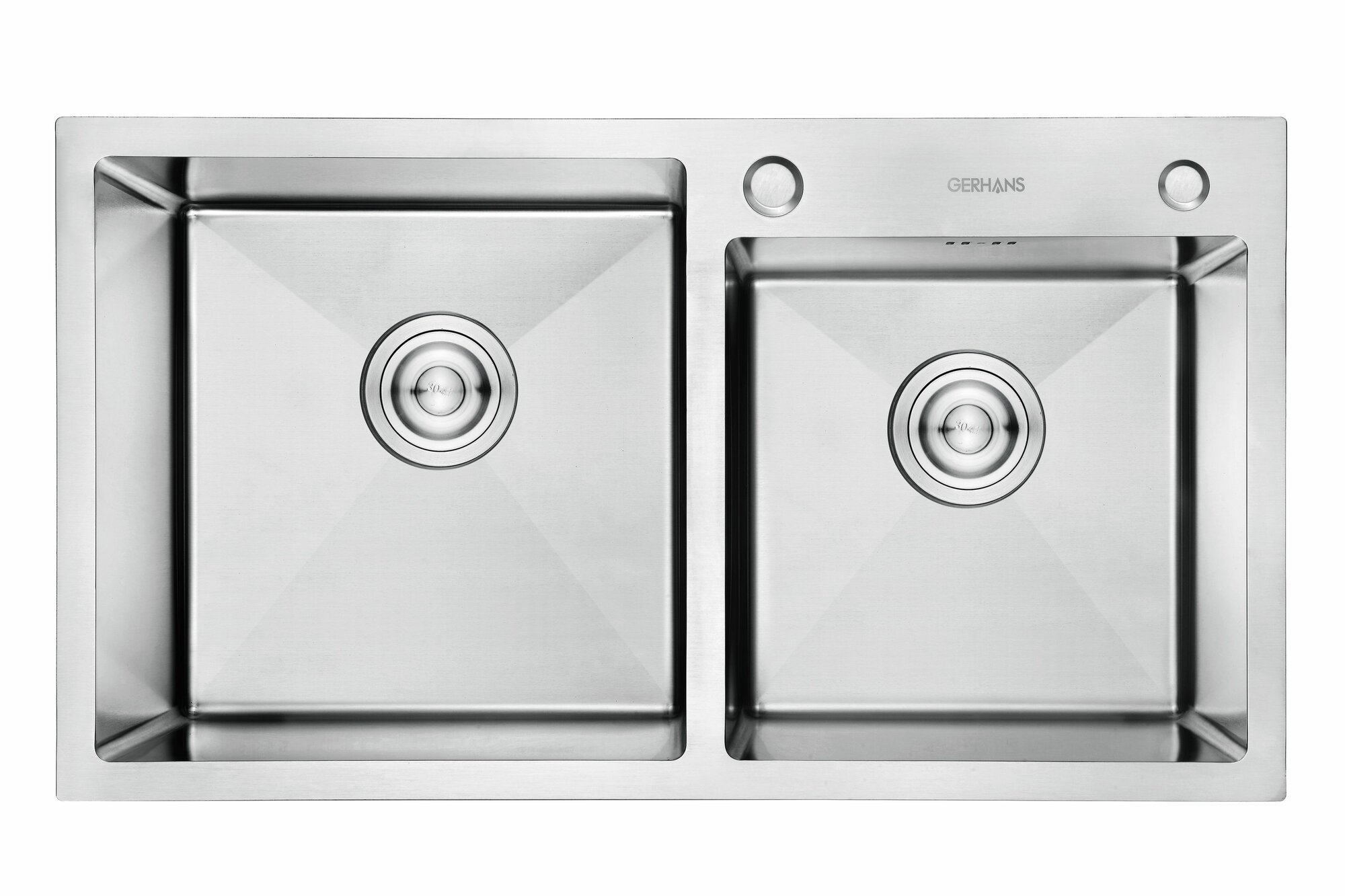 Купить Мойка врезная нержавеющая сталь 78х43, толщ 3,0 мм, сатин, двойная, премиум AF97843-D