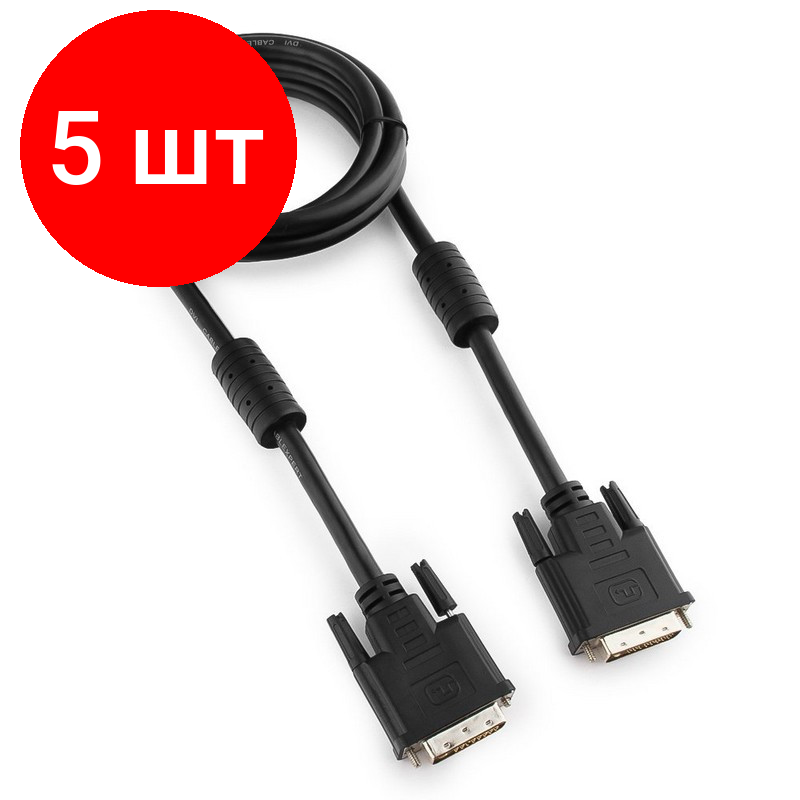 Купить Комплект 5 штук, Кабель DVI-D - DVI-D, 25М/25М, 1.8 м, фер, экр, Cablexpert, CC-DVI2-BK-6