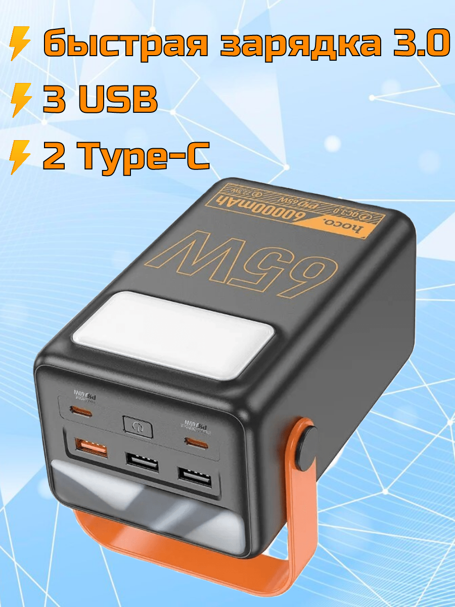 СохранитьПовербанк Hoco J110A 60000mAh 65W с быстрой зарядкой, черный интересное: