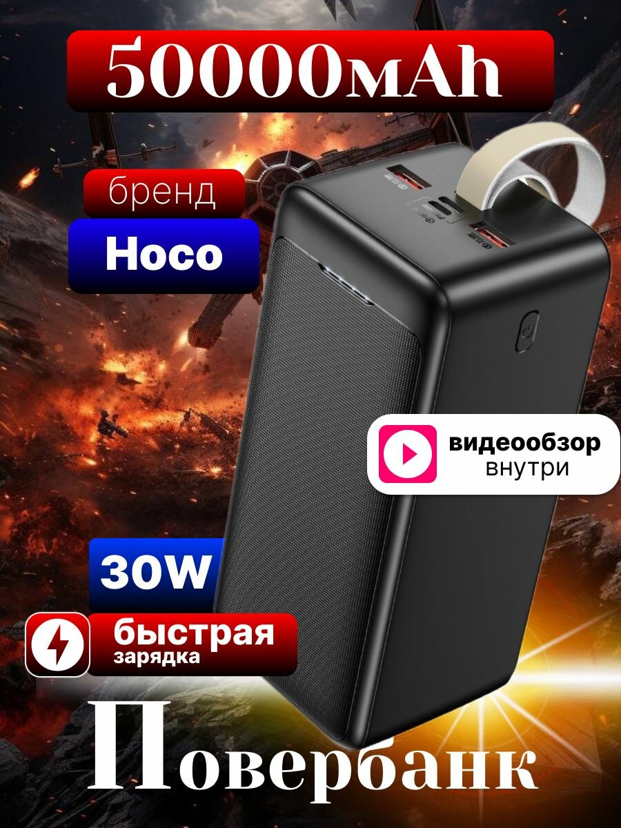 Внешний аккумулятор повербанк Power bank Hoco J111D 50000mAh PD 30W+ QC3.0, цвет Черный