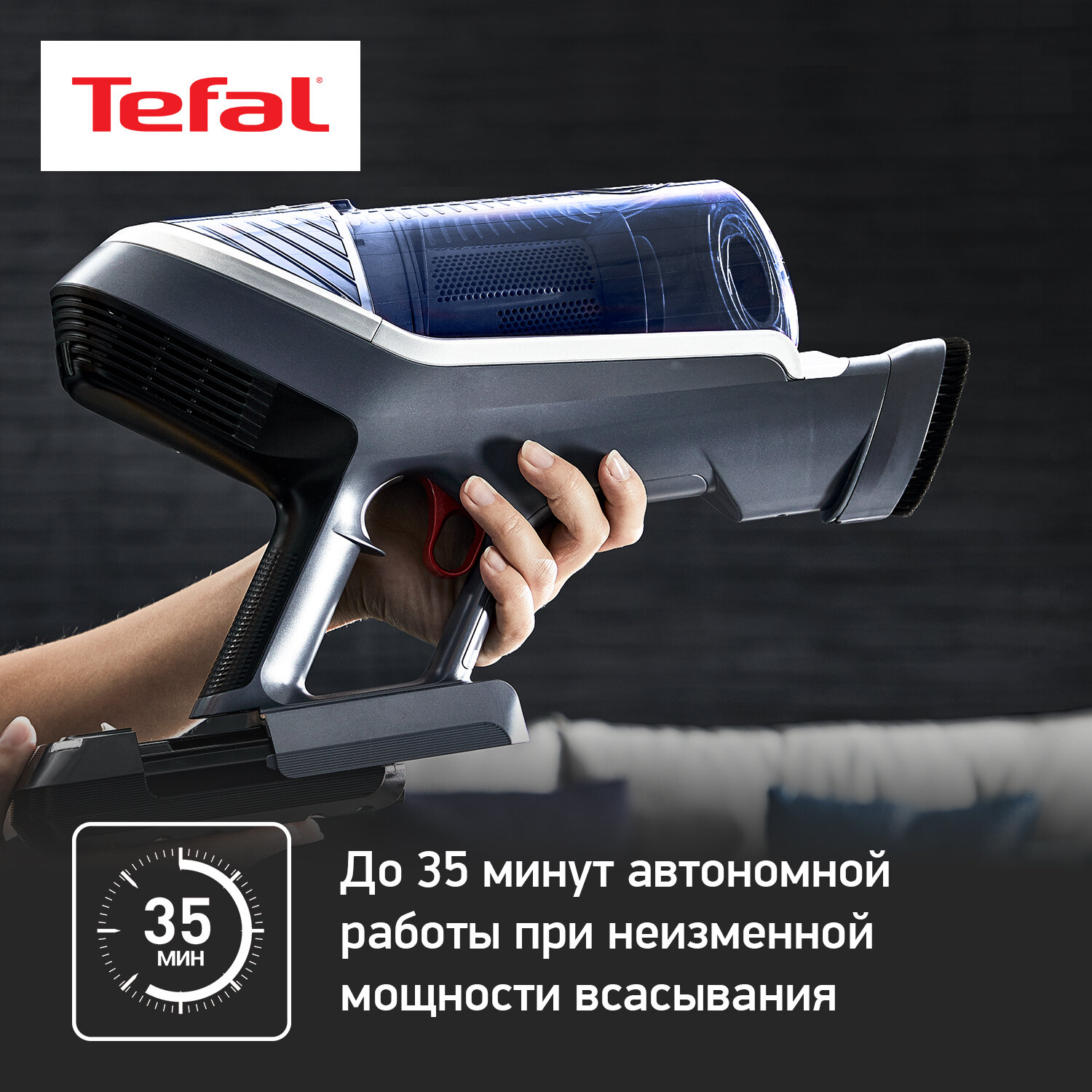 Дома есть кот, который ненавидит и не даёт себя вычёсывать. Поэтому в квартире всегда можно найти комочек его шерсти. Каждый раз доставать пылесос чтобы убрать один или два комочка - надоело, решил купить современный аккумуляторный пылесос, это быстрее, легче, да и убираться можно хоть каждый день. Углубился в вопрос и понял, что эта модель мне подходит лучше всего. При первом использовании коту, в отличии от меня, не очень понравился новый девайс. Уборка действительно проходит быстро, зарядки хватает на 4 раза убрать все полы в квартире. Очень хорошо зашла насадка для протирки, особенно эффективна оказалась в прихожей и на кухне. Пылесос лёгкий, манёвренный, мощный и удобный. Контейнер для пыли большой и легко снимается, аккумулятор, кстати, тоже съёмный и, по необходимости, можно купить новый или заказать дополнительный. Tefal сделал таки мою жизнь легче!