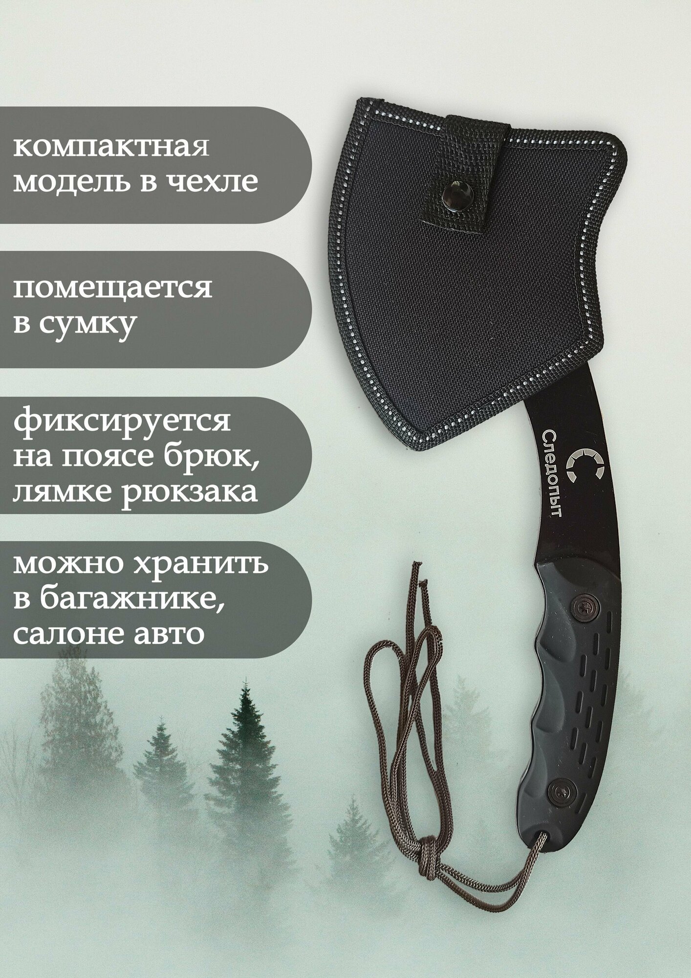 | Минусы: | Чехол сидит неплотно, поэтому край топора оголяется - в походах аккуратнее |