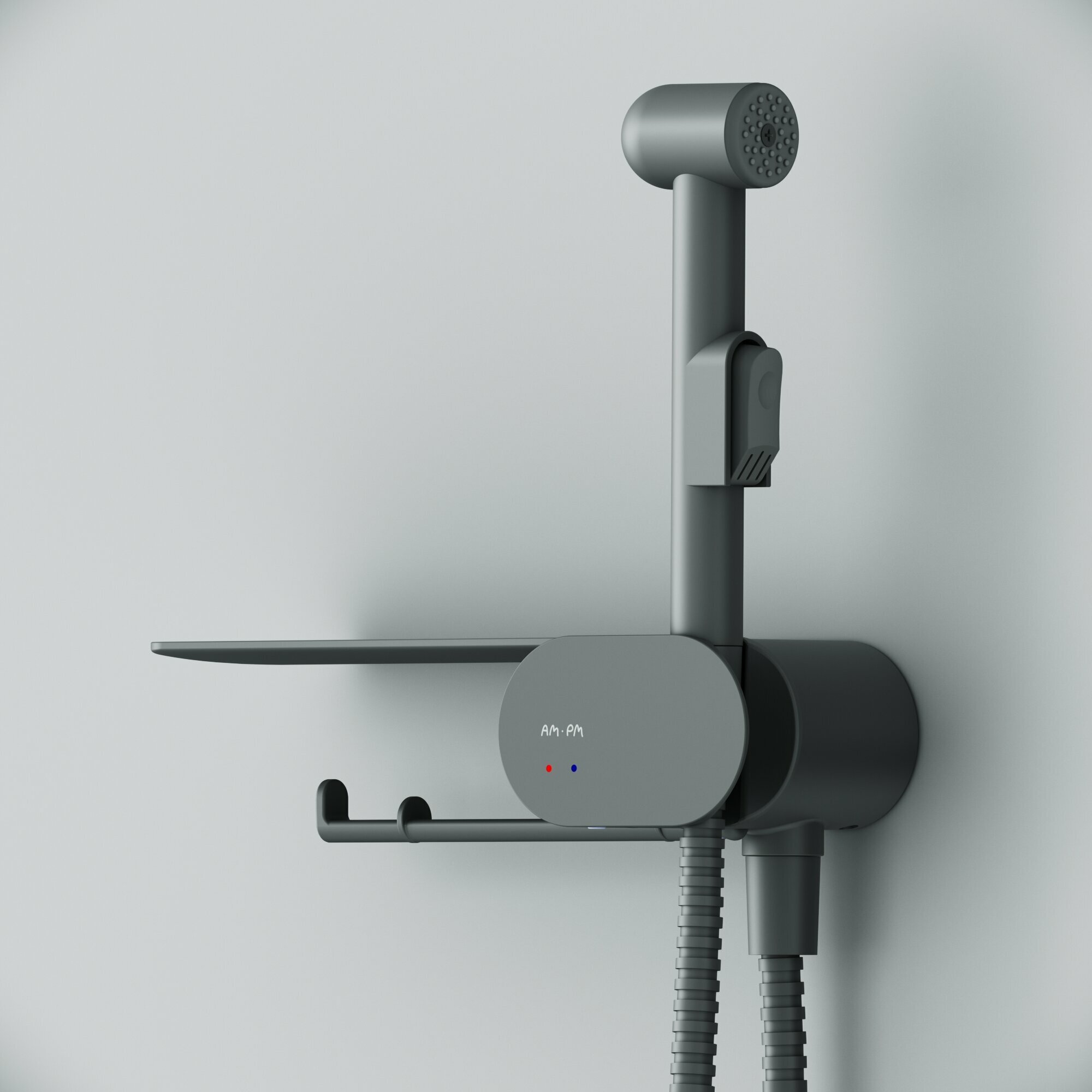 Гигиенический душ со смесителем AM.PM Like черный, полка, держатель для туалетной бумаги
