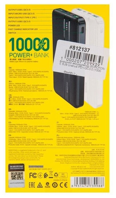 СохранитьАккумулятор внешний BOROFONE BJ9 Uranus PD+QC3.0 10000mAh (чёрный) интересное: