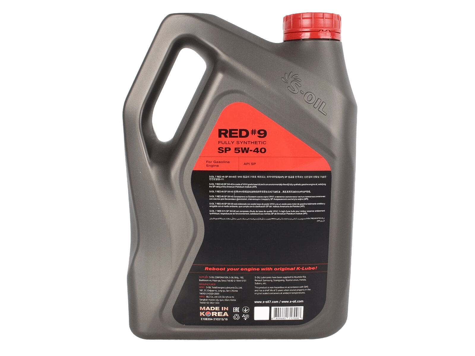 Синтетическое моторное масло S-OIL SEVEN RED #9 SP 5W-40, 4 л, 3.7 кг, 1 шт